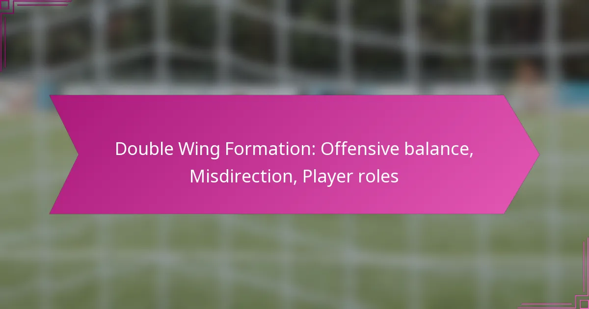 The Double Wing Formation achieves offensive balance by effectively distributing player roles and utilising misdirection to create diverse attacking options. This formation allows teams to maintain a versatile offence that can adapt to various defensive strategies, making it challenging for opponents to predict plays.